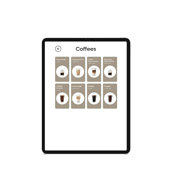Menu kan tilpasses med et bredt udvalg af kaffedrikke